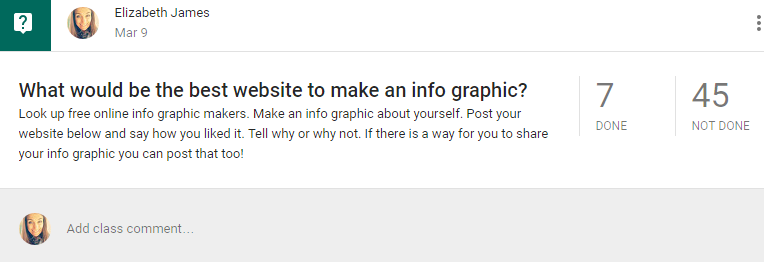 To help the students organize their ideas and discuss their findings with their classmates I created a Google Classroom discussion question: